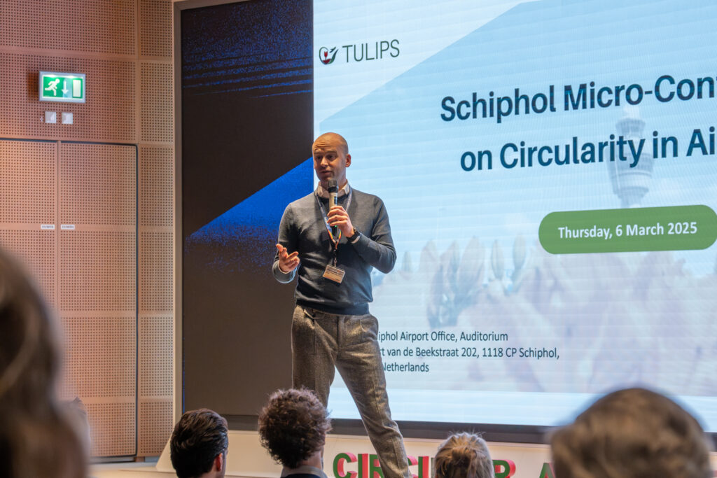 On March 6th, Schiphol and TULIPS welcomed fourteen airports, airlines, and circular economy experts for a mini-conference on ‘Circularity in Airports’. This event focused on reducing and reusing cabin waste and waste streams from the terminal. Additionally, the reuse of construction materials was discussed. We need to move away from linear waste systems at airports, which cause more emissions.
