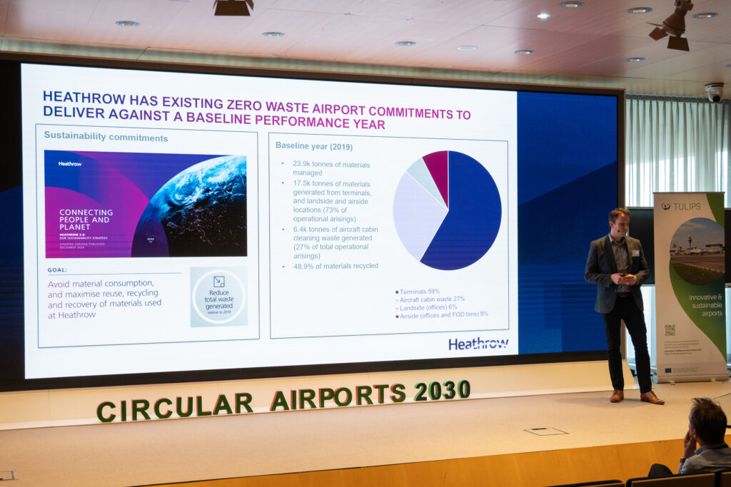 Measuring is knowing! By gaining better insight into our waste streams, we can take more effective measures to reduce, better separate, and reuse or upcycle waste. Schiphol presented its waste dashboard, Schiphol’s basis for the actions it is taking to become a zero-waste airport. Heathrow then shared experiences on better waste separation in the terminal and more sustainable coffee cups. Brussels Airport showed how they ‘harvest’ materials from demolished buildings for reuse in new constructions. The session was facilitated by TULIPS partner EME.